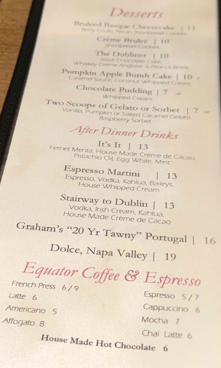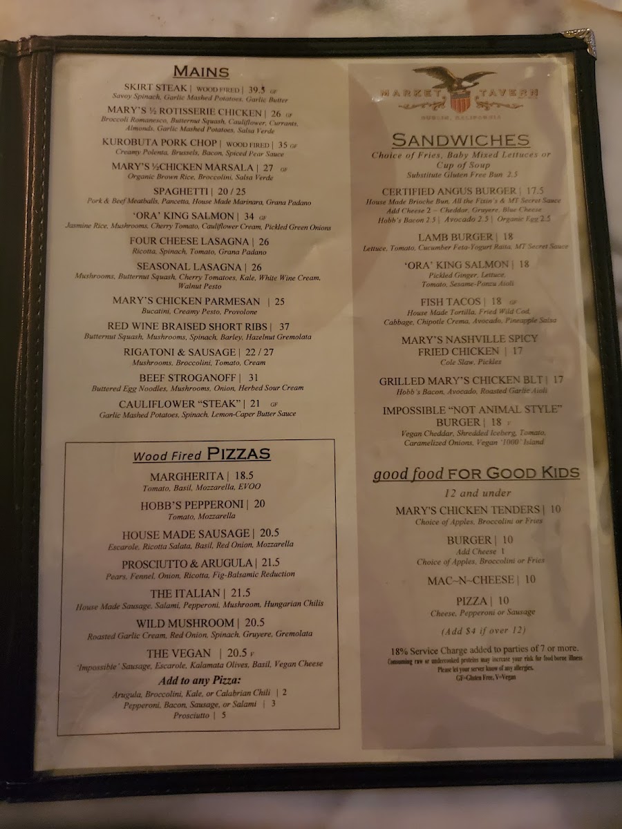 The menu presents a delightful array of American classics that cater to all tastes. For the kids, there's Mary's Chicken Tenders served with a choice of side for just $13, or choose from a variety of pizzas—cheese, sausage, or pepperoni—for just $14. Adults can indulge in highlights like the Seasonal Lasagna, crafted from fresh corn, mushrooms, cherry tomatoes, kale, and a savory garlic cream sauce, priced at $27. If you're craving something hearty, don’t miss the daily special—an impressive 15oz 'Prime Grade' Ribeye for $54 that promises a robust flavor profile complemented by garlic mashed potatoes and braised greens. The pork chops served here have garnered a rave review from Paul Connell, claiming it to be the best he’s ever had from a restaurant.